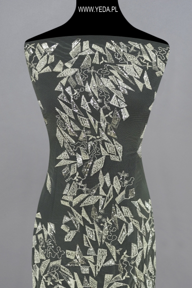 Wysokiej jakości koronka zdobiona wyróżniająca się niebanalnym wzorem oraz dekoracyjnymi detalami. Stworzona została z myślą o najbardziej wymagających kobietach, którym zależy na uzyskaniu wyjątkowej i efektownej stylizacji. Prezentowana koronka świetnie sprawdzi się jako baza ślubnej lub wieczorowej kreacji. Swój urok zawdzięcza znajdującym się na niej detalom. Odbijają one światło i rozświetlają materiał, a w konsekwencji przykuwają spojrzenia.
