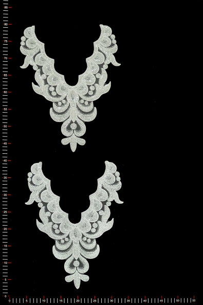 Aplikacja zdobiona, stworzona z eleganckiej koronki oraz niepowtarzalnych, rozświetlających naszywkę dodatków. Cały design produktu pozwala wykorzystać go jako wyjątkowy element dekoracyjny sukni wieczorowej, koktajlowej lub ślubnej.