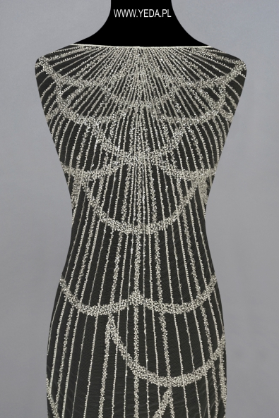 Wysokiej jakości koronka zdobiona wyróżniająca się niebanalnym wzorem oraz dekoracyjnymi detalami. Stworzona została z myślą o najbardziej wymagających kobietach, którym zależy na uzyskaniu wyjątkowej i efektownej stylizacji. Prezentowana koronka świetnie sprawdzi się jako baza ślubnej lub wieczorowej kreacji. Swój urok zawdzięcza znajdującym się na niej detalom. Odbijają one światło i rozświetlają materiał, a w konsekwencji przykuwają spojrzenia.