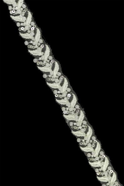 Wysokiej jakości taśma zdobiona o szerokości do 5 cm została stworzona z eleganckiej koronki, która zachwyca swoim designem. Odbijające światło elementy podkreślają nie tylko piękno samego produktu, ale także całej stylizacji go wykorzystującej.