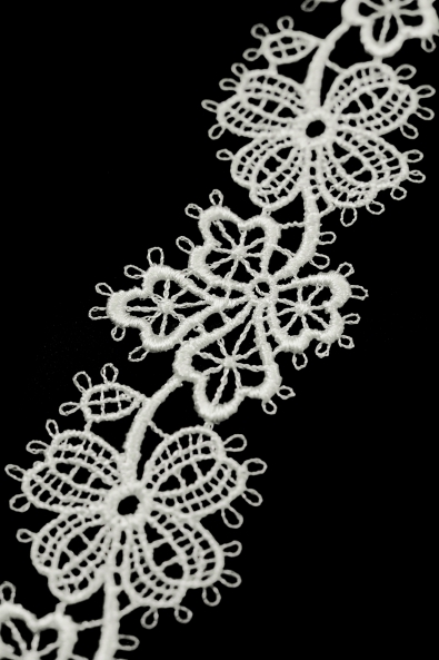 Najwyższej jakości taśma niezdobiona stworzona z gipiury. Doskonale sprawdza się jako element wykończeniowy zarówno sukienek jak i obrusów, firan czy innych tekstyliów. Wypukła forma oraz ciekawy wzór koronki sprawiają, że tkanina zyskuje subtelny akcent dekoracyjny.