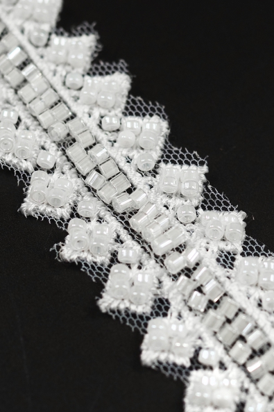 Wysokiej jakości taśma zdobiona, stworzona z niezwykle eleganckiej koronki. Zachwyca pięknymi wzorami oraz dodatkami, które podkreślają urok okraszonej nią tkaniny. Stanowi doskonałe zwieńczenie każdej sukni ślubnej, wieczorowej lub koktajlowej. Ten niepozorny detal przykuwa wzrok i budzi zachwyt.