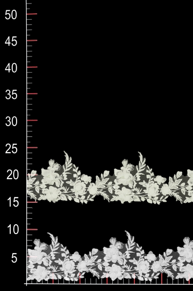 Wysokiej jakości taśma zdobiona, stworzona z niezwykle eleganckiej koronki. Zachwyca pięknymi wzorami oraz dodatkami, które podkreślają urok okraszonej nią tkaniny. Stanowi doskonałe zwieńczenie każdej sukni ślubnej, wieczorowej lub koktajlowej. Ten niepozorny detal przykuwa wzrok i budzi zachwyt.