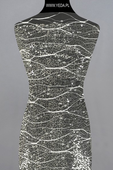 Kobieca i elegancka koronka niezdobiona wyróżniająca się najwyższą jakością wykonania. Wyjątkowy deseń sprawia, że materiał ten doskonale sprawdzi się jako część koktajlowej, wieczorowej, a nawet ślubnej kreacji. Głównym walorem estetycznym tego produktu jest właśnie wspomniany wzór, ponieważ na koronce nie pojawiają się żadne dodatkowe zdobienia. Ten materiał doskonale pasuje do kobiet, które cenią klasyczny styl i płynącą z niego subtelną elegancję.