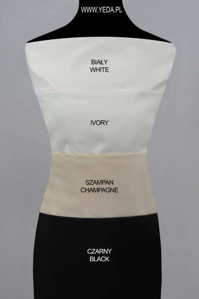 W przypadku sukienek, bądź spódnic, przydatna okazuje się dodatkowa podszewka, która jest niezwykle przydatnym elementem odzieży. Dzięki niej kobiety nie są narażone na przyklejanie się ubrania do ciała, elektryzowanie czy podnoszenie się materiału. Dzięki niej ciało jest również chronione przed zimnem. W ofercie znajdują się cztery kolory, które indywidualnie można dopasować do danej sukienki. Jest to kolor: biały, ivory, szampan oraz czarny. Podszewka wykonana jest w stu procentach z poliestru o szerokości 150 cm i posiada gramaturę 107g/m2. Wykończona jest w półmacie. Jest to standardowa podszewka, którą można wykorzystać w każdym rodzaju sukienki, spódniczki czy nawet kurtki. W jej przypadku zalecane jest delikatne czyszczenie chemiczne. PG31